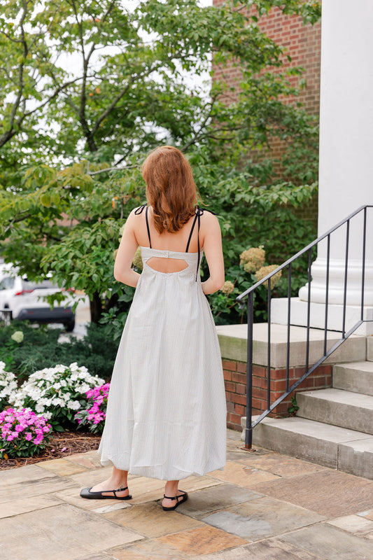 Textured Stripe Bubble Hem Midi Dress