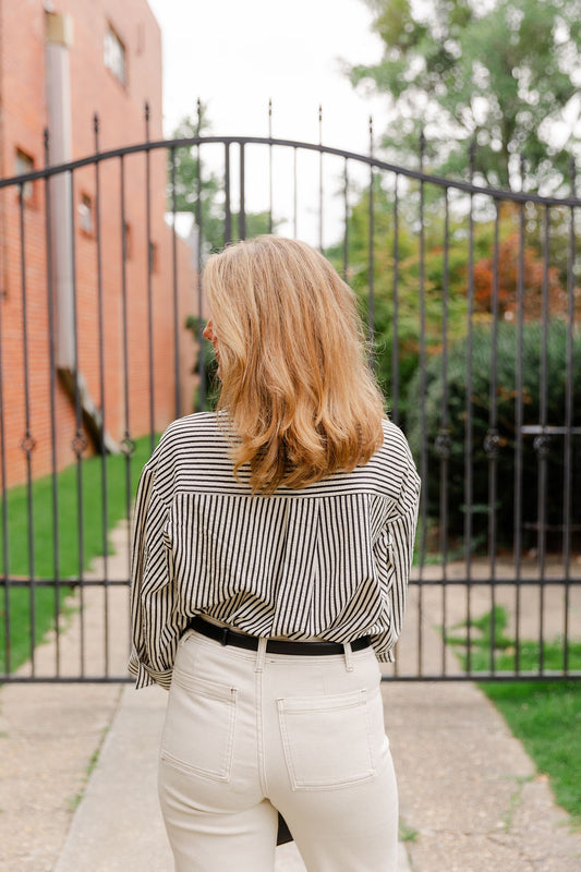 Textured Striped Button Down Top