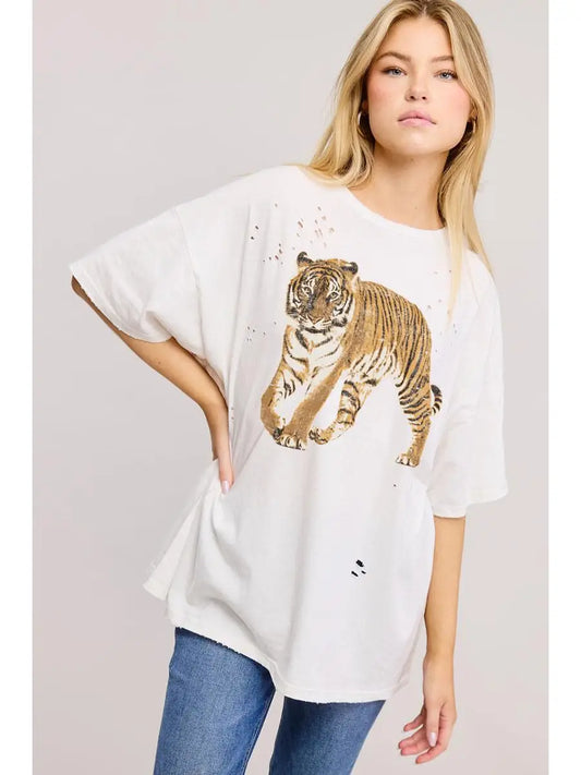 Vintage Tiger Graphic Distressed Oversized Seamless Tee