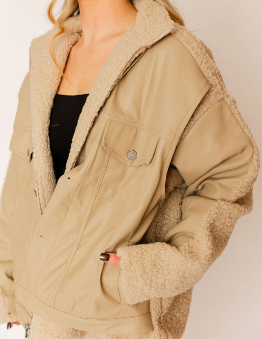 FAUX LEATHER CONTRAST SHERPA JACKET