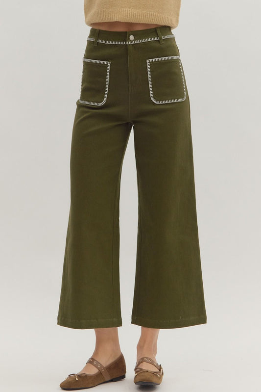 High Waist Stitch Trim Pants