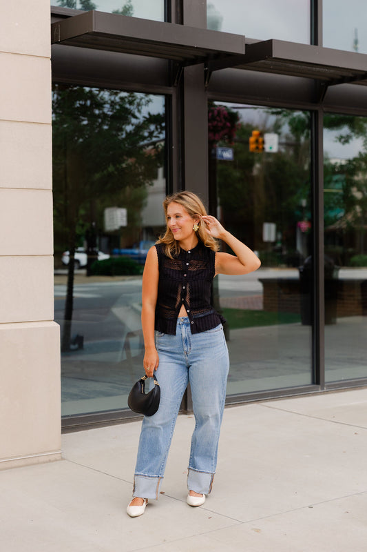 Sleeveless Patterned Sweater