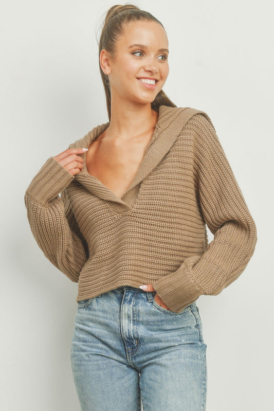 LONG SLEEVE RIBBED MOCK NECK CROP SWEATER