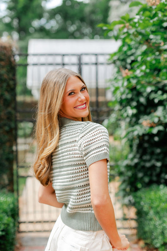 PUFF SHOULDER LONG SLEEVE CABLE MOCK NECK SWEATER TOP