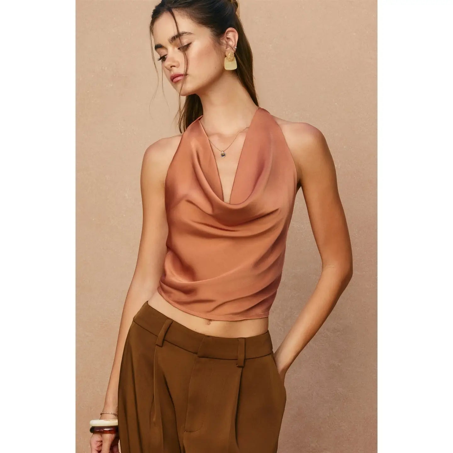 Satin Open Back Halter Top