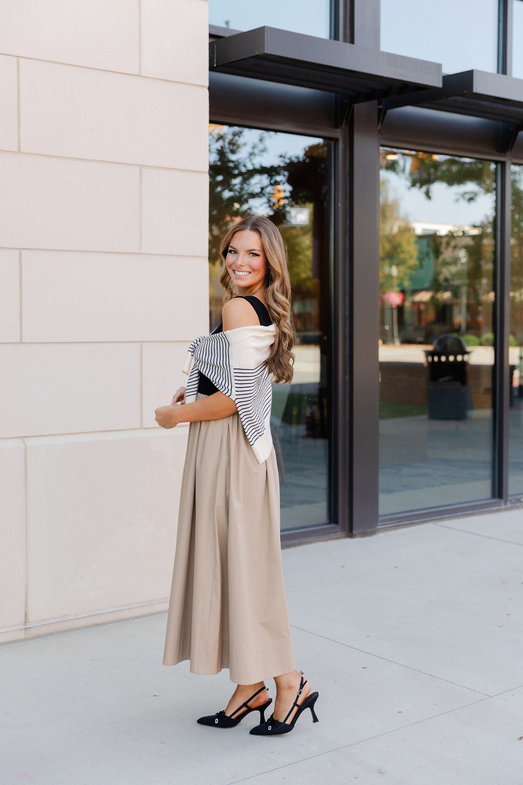 Classic stripes, elevated for the season. This knit sweater is soft, versatile, and perfect for layering on cooler days. With its relaxed fit and timeless design, it pairs effortlessly with denim, skirts, or layered over dresses for an easy yet put-together look. A wardrobe staple you’ll reach for again and again.