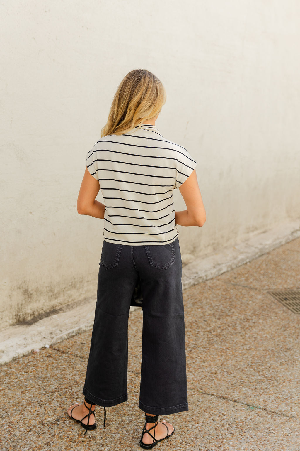 An effortless essential with a timeless touch. This striped knit top is lightweight, versatile, and perfect for year-round wear. Pair it with denim for a casual look, tuck it into a skirt for something more polished, or layer it under a blazer when the weather cools. A classic piece that never goes out of style.